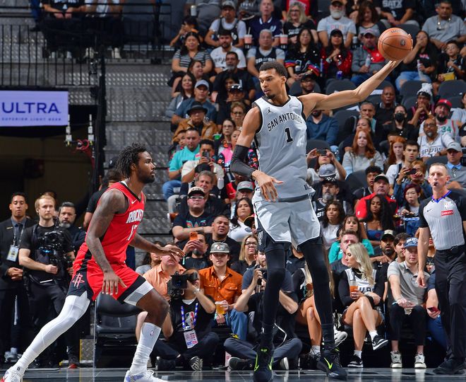 首节两队打防守大战,两队都是非常的打铁,火箭目前是进攻效率第一,防守效率第六的球队,而马刺是防守效率第二,这一节的防守大战两队的差距很小,申京这个点是连续单吃文班亚马,首节火箭还领先2分。