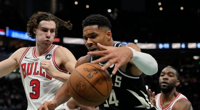 公牛是本赛季的头号黑马,在这一战前取得了5胜2负的战绩。对于雄鹿来说,这是一场硬仗。字母哥在这一战的前半节打得并不顺,只靠罚球得到3分。首节末尾重新上场,他才释放能量,一次补篮得分,另外一次接到科尔·安东尼的助攻扣篮得分。