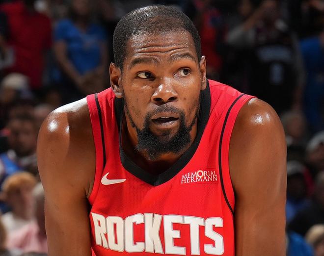 第三位是杜兰特,死神手中的镰刀依然犀利。杜兰特上一场比赛打马刺时24分2助攻9失误的表现相当辣眼睛,他把所有的郁闷都化作动力,每当字母哥带队要拉开比分时,杜兰特都能挺身而出用最简单最粗暴的方式帮助火箭度过了最艰难的时段!全场比赛下来,杜兰特出战37分钟,15投11中(三分球2中2),罚球9中7,砍下31分+3篮板+7助攻的全面数据。据统计,此役过后,杜兰特生涯三分球命中数来到2206个,追平洛瑞并列NBA历史第13位,距离排名第12位的克劳福德(2221个)仅差15个。