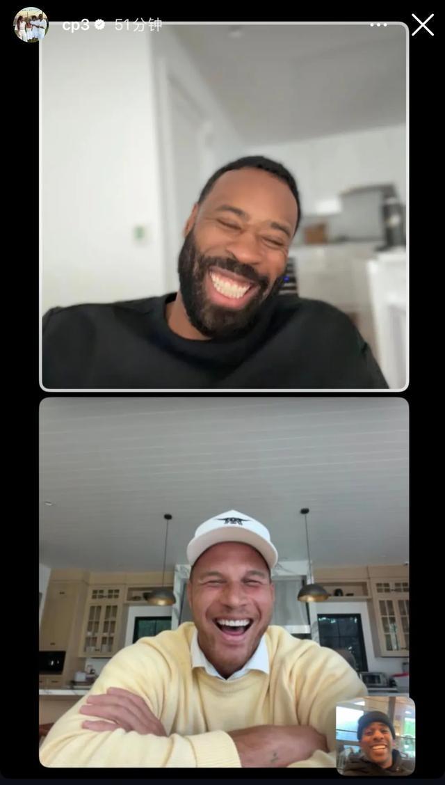 在被快船“遣送”回家后,保罗自己的心情倒是不错,毕竟他和快船的冷战已经持续了几周,这样的结果可能也在保罗的预料之内。他今天晒出和格里芬、小乔丹视频通话的截图,三个人都笑得很开心,格里芬当年签完顶薪合同就被扫地出门,保罗现在也算感同身受了。