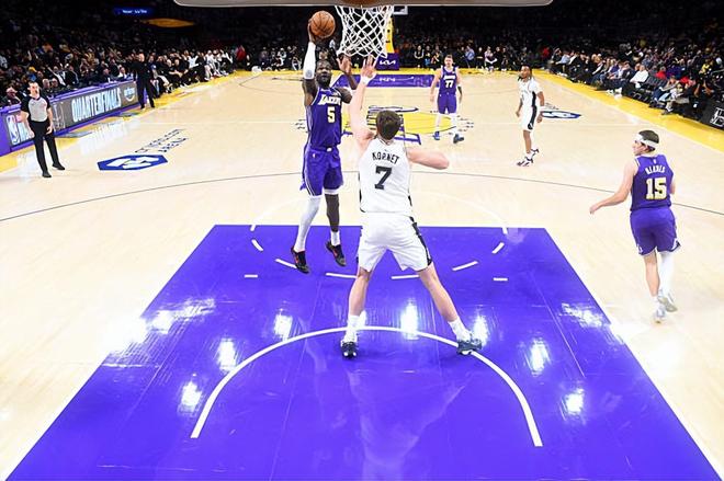 本场比赛中,湖人的先发中锋德安德烈-艾顿(DeAndre Ayton)的表现相当吃力。艾顿全场出场25分39秒,投篮9中5,罚球2中1,得到了11分8篮板1助攻1抢断的数据,还有3次犯规,其中还包括了3个前场篮板,正负值为-10。艾顿在进攻端完全得不到战术地位作为支持,当然也没有办法拿到更多的分数。艾顿在前后场篮板争抢方面的表现也是值得肯定的,但是这也没有办法改变球队的整体局面。艾顿在防守端其实是非常努力的,然而问题就在于,他身边的几个球员简直是个个漏勺,每一个球员在防守端都有着极其糟糕的表现。湖人在防守端甚至可以说是全指着艾顿一个人的努力,这听起来都显得有些搞笑了。艾顿再努力也不能改变球队整体防守一塌糊涂的事实,而且他在进攻端也打得相当委屈。艾顿虽然很努力,但是他在这种情况下也确实是没办法改变球队的整体局面。