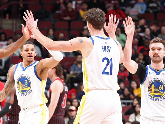从勇士最近5场比赛说起。112-124输给雷霆,球队替补阵容将比赛拖到第四节,罕见没让亚历山大提前打卡,即便巴特勒只拿6分提前伤退,但球队防守端展现的侵略性很强。98-99惜败76人一战,巴特勒不在,替补席4人上双,但凡库明加少打几分钟,勇士都能赢,他太会乱来了。之后击败骑士一战,斯潘塞和桑托斯两位角色球员成为功臣,只让骑士拿到94分。123-91大胜公牛一战,巴特勒19分8篮板6助攻,产量不算高,但全员攻防在线,直接打花对手。而最近一场和森林狼的比赛,库里复出,空砍39分,勇士让森林狼拿到127分。