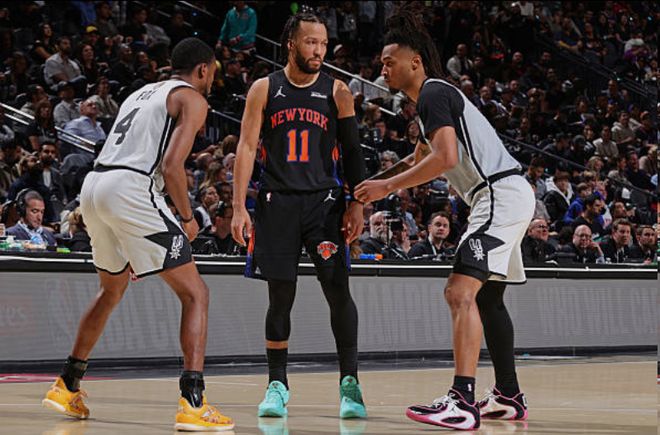 有意思的是,本场比赛,马刺仍然是全民皆兵,球队7人得分上双,但是尼克斯同样6人得分上皇,特别是阿奴诺比和布伦森得分均有25分以上,与尼克斯相比,马刺的“球星时刻”还是少了些光环。
