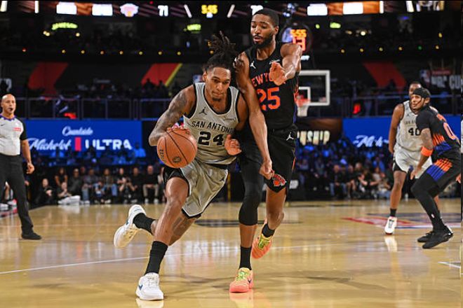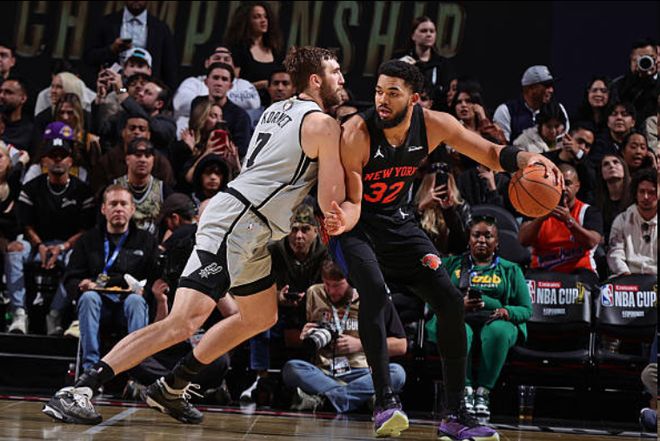 北京时间12月17日,在NBA杯的决赛中,纽约尼克斯面对圣安东尼奥马刺。球队在前三节落后的情况下,末节,尼克斯打出一波17-6的攻击波,将比分反超,最终尼克斯守住比赛的胜利,球队以124-113击败对手,拿下了NBA杯的冠军。