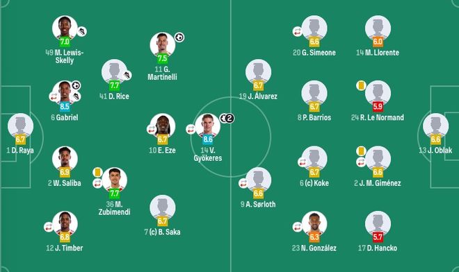 马竞首发:13-奥布拉克、14-略伦特、24-勒诺尔芒、2-吉梅内斯(63'3-鲁杰里)、17-汉茨科、6-科克(63'4-加拉格尔)、8-巴里奥斯、20-西蒙尼(73'11-阿尔马达)、23-尼科-冈萨雷斯(6310-巴埃纳')、9-瑟洛特(73'7-格列兹曼)、19-阿尔瓦雷斯